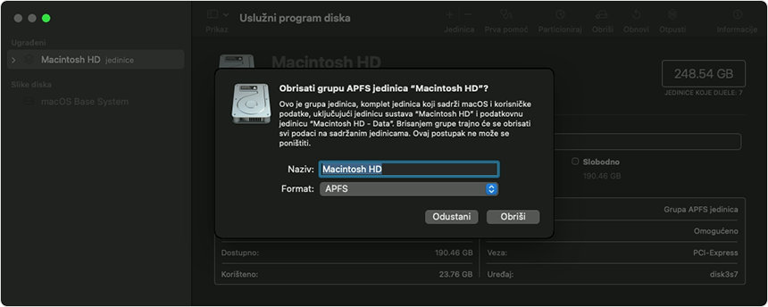 Ako se disk i dalje ne pojavljuje ili se pojavi pogreška tijekom brisanja, vašem Macu može biti potreban servis.