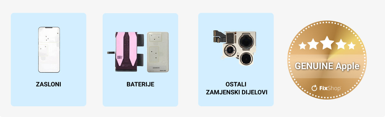 U FixShopu nastojimo pružiti rješenja za sve potrebe naših kupaca. Zato nudimo različite razine kvalitete zamjenskih dijelova. Uključivanjem GENUINE Apple dijelova u naš asortiman odgovaramo na potražnju tržišta — nudimo originalnu kvalitetu sa svim pripadajućim prednostima.