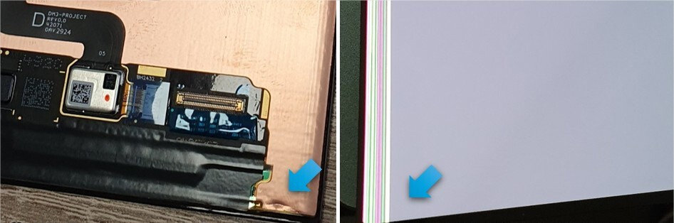 Slika 3: Prekomjerno savijanje flex kabela uzrokovalo je obojene vertikalne pruge.