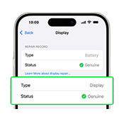 Zaslon uključuje sve komponente potrebne za profesionalnu zamjenu - uključujući prednju kameru, senzore blizine i vijke za montažu. Nakon što je popravak završen, Appleov softver Repair Assistant automatski provjerava i potvrđuje autentičnost zamjenskog dijela. Status " Original " tada će se pojaviti u postavkama uređaja, jamčeći da je korišten službeni Appleov dio .
